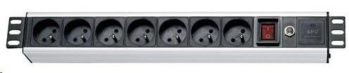 19" rozvodný panel XtendLan 7x230V, ČSN, vypínač, indikátor napětí, přepěťová ochrana, proudová ochrana kabel 1,8m, výška 1,5U