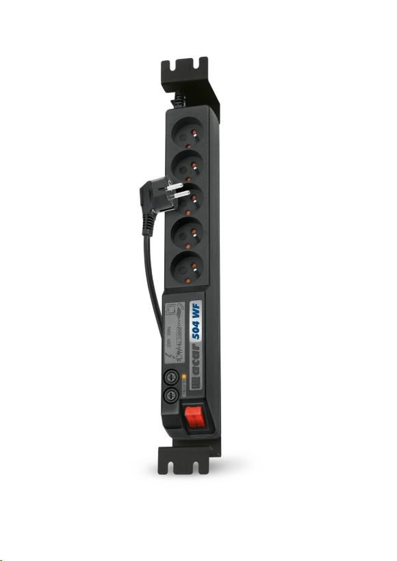 19" rozvodný panel ACAR 5x230V, vypínač, indikátor napětí, přepěťová ochrana, kabel 1,5m