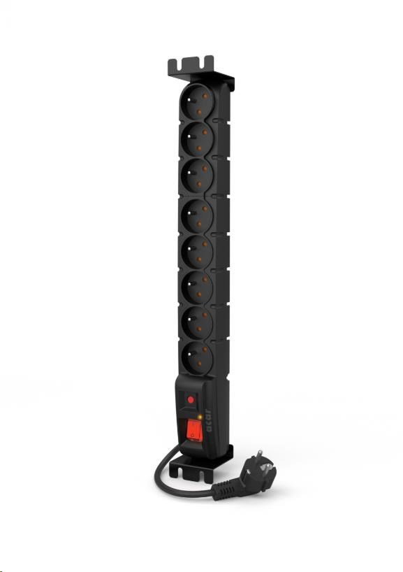 19" rozvodný panel ACAR 8x230V, vypínač, indikátor napětí, přepěťová ochrana, kabel 5m