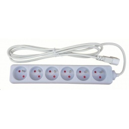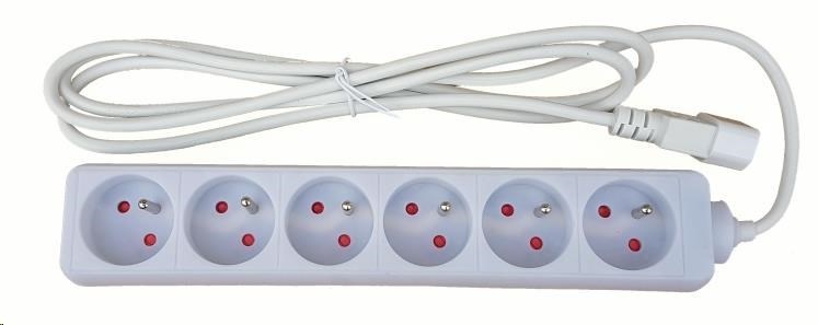 Prodlužovací přívod 6x230V CEE7/5 pro připojení do UPS s konektory IEC 320-C14. Počet výstupních zásuvek: 6 Délka kabelu: 2m, 3x0,75mm2 Maximální napětí: 230V Maximální proud: 10A Baleno v PE sáčku.Typ příslušenství: