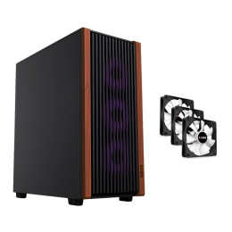 Skříň G6 Noble spojuje moderní technické prvky s elegantním designem. Přední panel s dřevěným dekorem nejen decentně vyniká, ale zároveň umožňuje efektivní proudění vzduchu a jednoduché čištění osazených filtrů. Zvolit můžete z několika variant, od varianty s pevnou kovovou bočnicí a třemi standardnímy ventilátory v příslušenství, až po variantu se setem s ARGB podsvícením ventilátorů, který lze snadno synchronizovat se systémy jako ASUS Aura Sync, MSI Mystic Light, GIGABYTE RGB Fusion či ASRock Polychrome Sync.