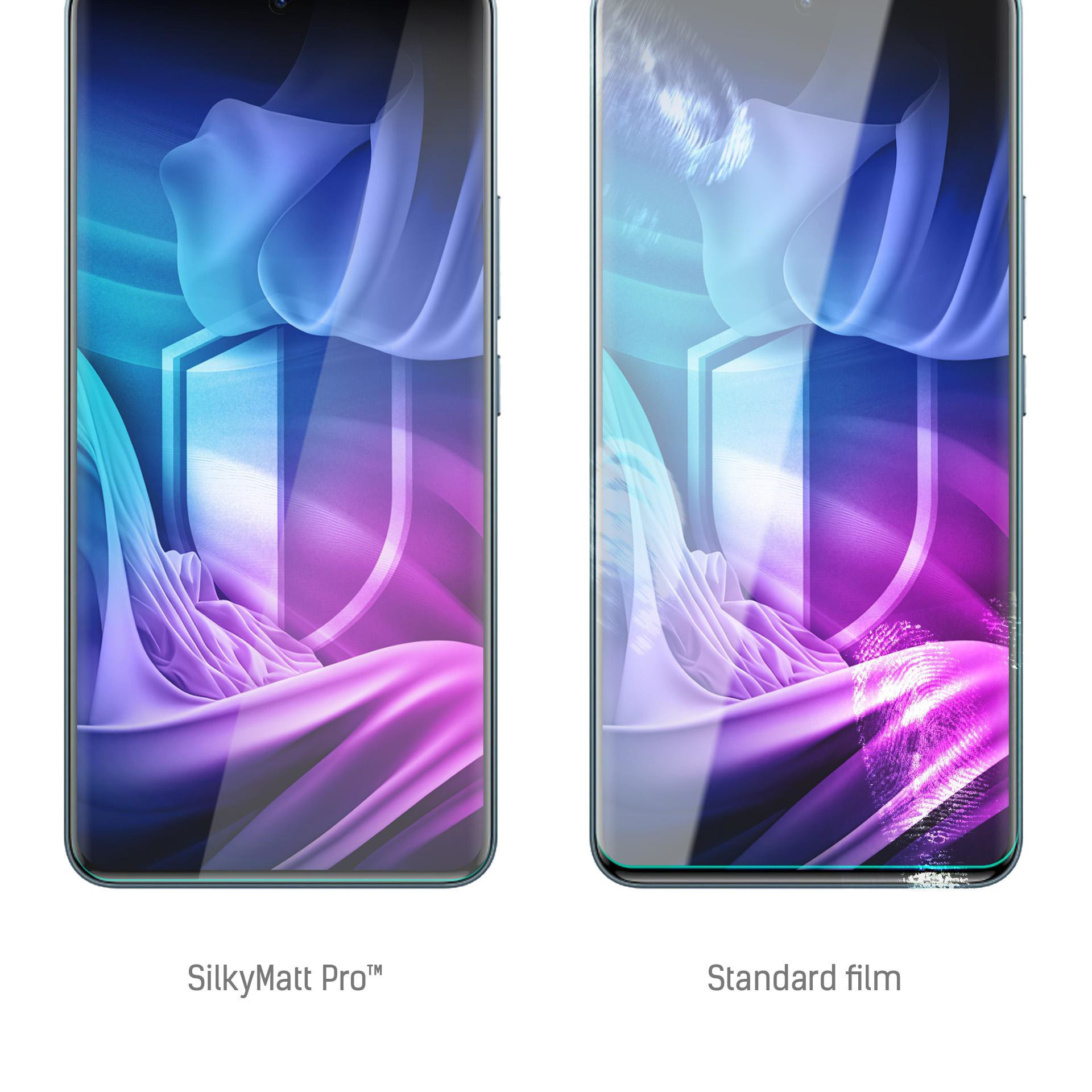 SilkyMatt Pro je ochranná fólie, která je bezohledná vůči každodenním rizikům. Zesiluje obrazovku chytrého telefonu až o 400%! Jednou z vrstev ve víceprvkové struktuře je mnohokrát přetestován protinárazový základ. Jeho přítomnost výrazně minimalizuje riziko poškrábání a poškození displeje při pádu na tvrdý povrch a kontaktu s ostrými předměty. Se SilkyMatt Pro ušetřete si stres a drahé výměny obrazovky. Můžete používat telefon kdy chcete a nosit jej tak, jak máte rádi.