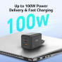 ACER Adaptér 100W GaN charger, 3porty: 2x USB-C + 1x USB-A ports, EU a UK zástrčka, textilní obal, black