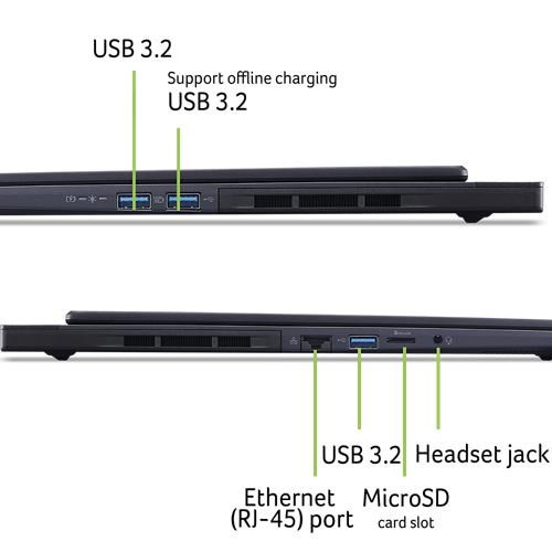 1x USB Type-C port supporting: USB 3.2 Gen 2 (up to 10 Gbps) / DisplayPort over USB-C / Thunderbolt 4 / USB charging 5 V; 3 A / DC-in port 20 V; 90/100 W