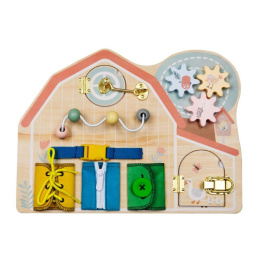 Activity board v podobě farmy zavede holčičky i chlapce na venkov, kde si pohrají s hracími prvky a osvojí si pár praktických dovedností. Activity board s ozubenými koly, korálkovým bludištěm, dvířky a okýnkem, různými zámky a různými způsoby zapínání vede děti k samostatnosti ve hře, v poznávání a učení se, v oblékání..