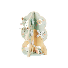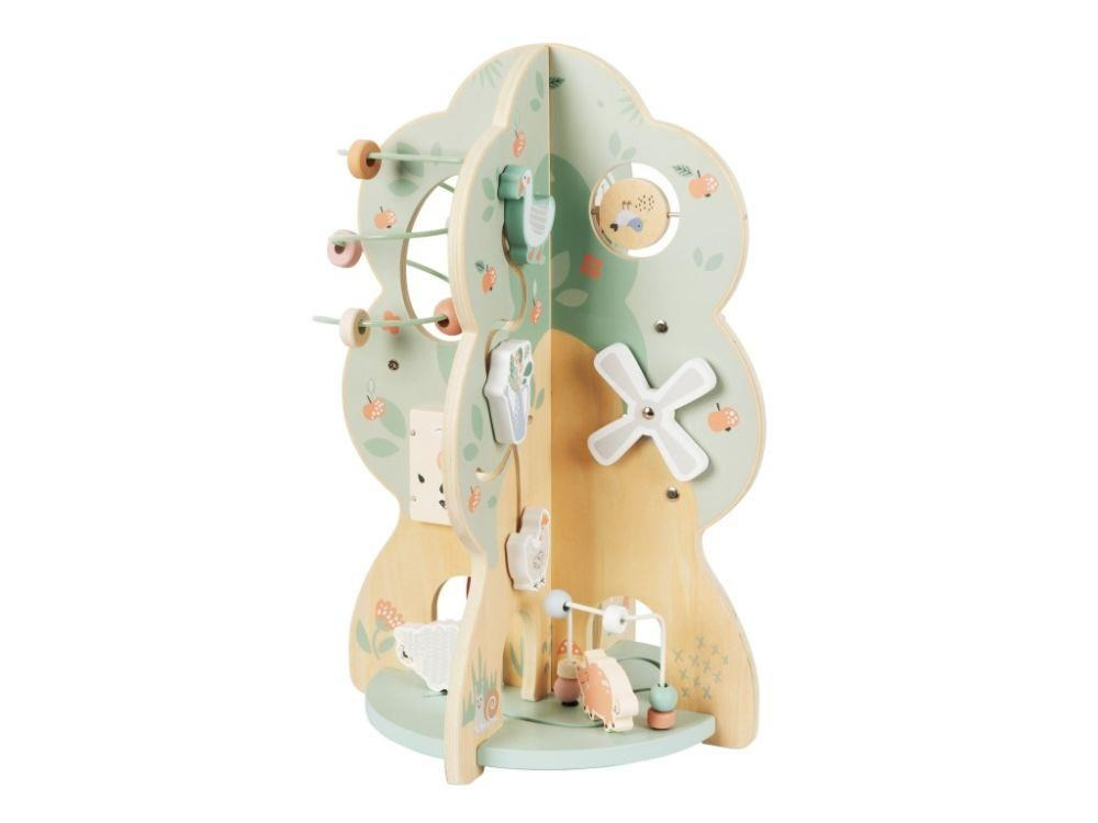 Activity board v podobě stromu zavede holčičky i chlapce na farmu, kde si pohrají s hracími prvky a zvířátky, která mohou vidět ve svém okolí, na venkově, na farmě. Příjemné pastelové barvy a motiv zvířátek dodávají hračce lákavý vzhled a lákají k pečlivému prozkoumání. Activity board strom vede děti k samostatnosti ve hře, v poznávání a učení se, zdokonaluje dětské dovednosti..