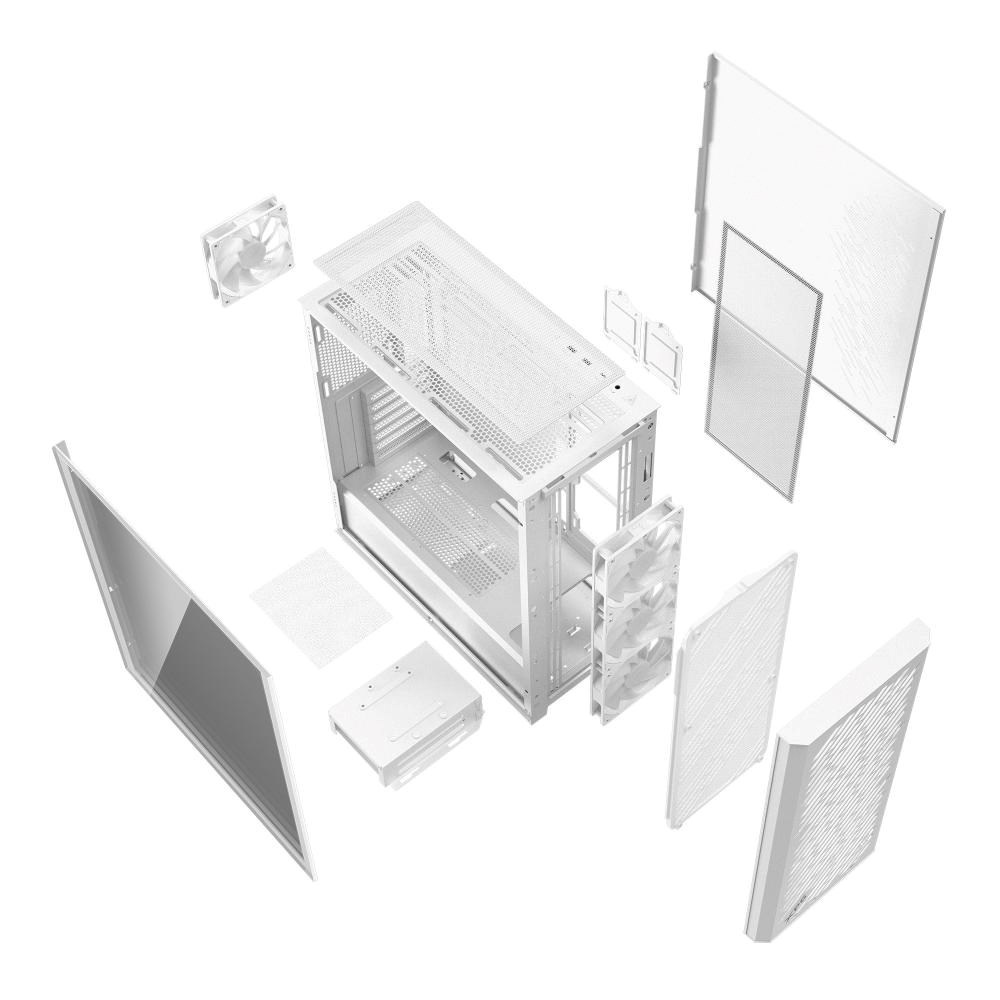 Navržen tak, aby posílil jak začátečníky, tak zkušené vylepšovače, VALOR AIR PRO je vlajkovou lodí řady VALOR AIR – poskytuje základní funkce bez kompromisů. S podporou základních desek E-ATX, grafických karet až do délky 400 mm, instalace 360mm radiátoru a až 9 pozic pro ventilátory je navržena pro velké nápady v čistém a přístupném uspořádání. Od odvážného designu proudění vzduchu ve stylu šikmých zářezů až po snadno přístupný přední panel, VALOR AIR PRO učiní vaši další stavbu plynulejší, chytřejší a schopnější od prvního kroku.