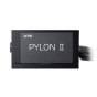 Zdroj PYLON II Bronze poskytuje účinnost 80 PLUS Bronze, čímž snižuje náklady na energii bez ztráty výkonu. Je navržen v souladu se standardy Intel ATX 3.1 a nabízí řešení připravené na budoucnost pro komponenty s vysokými nároky. Je vybaven tichým a odolným ventilátorem FDB, který zajišťuje účinné chlazení pro stabilní provoz bez hluku. PYLON II je podpořen 8 ochranami průmyslové třídy a pětiletou zárukou, což zaručuje dlouhodobou spolehlivost a klid pro vaši sestavu.