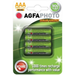 AgfaPhoto nabíjecí NiMH baterie AAA, 900mAh, blistr 4ks