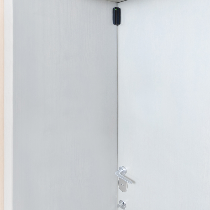 Ajax DoorProtect díky miniaturním high-end senzorům a bezdrát ovékomunikaci umožňuje zabezpečení oken a dveří na několika podlažích budovy.