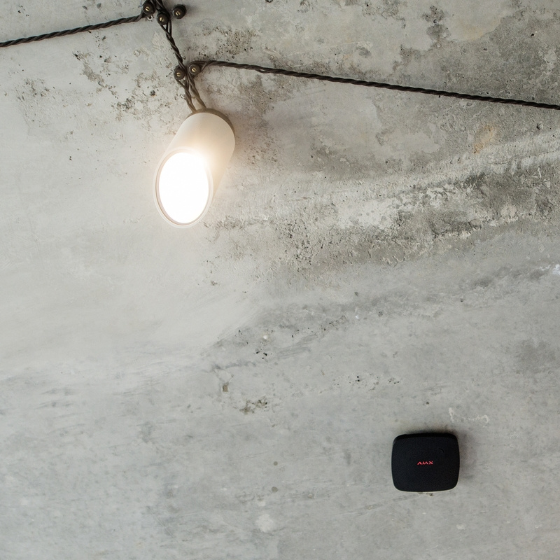 Bezdrátová technologie Jeweller umožňuje komunikaci s Ajax Hubem až na vzdálenost 1 300 m v otevřeném prostoru nebo přes několik podlaží výškové budovy.
