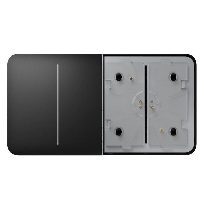 Kombinovaný vypínač se skládá ze 2, 3, 4 nebo 5 relé, dotykových tlačítek a rámečku s odpovídajícím počtem otvorů. Místo vypínače lze použít i inteligentní zásuvku Ajax