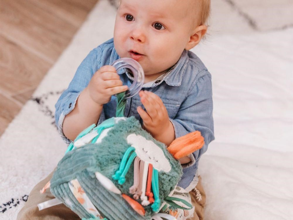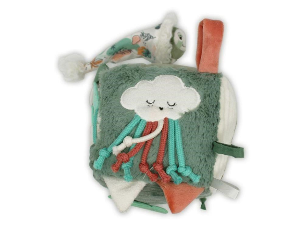 Přestože je lenochod zvířátko, které se pomalu pohybuje a většinu dne prospí, tak tato aktivity kostka lenochod rozhodně vaše miminko lenošit nenechá. Originální prvky v podobě chrastítka, zrcátka, suchých zipů, šustících hodin, tvarů na suchý zip, s provázky, s různými materiály, s kapsičkou a se schovaným lenochodem motivují miminko k pohybu, k prozkoumání, objevování, mačkání, ochutnávání. Při hře se zábavnými prvky na aktivity kostce děti stimulují své smysly, zdokonalují jemnou motoriku i koordinaci očí a rukou. Prohlédněte si tuto úžasně heboučkou kostku s aktivitami, která je skvělým dárkem pro děti již od narození.