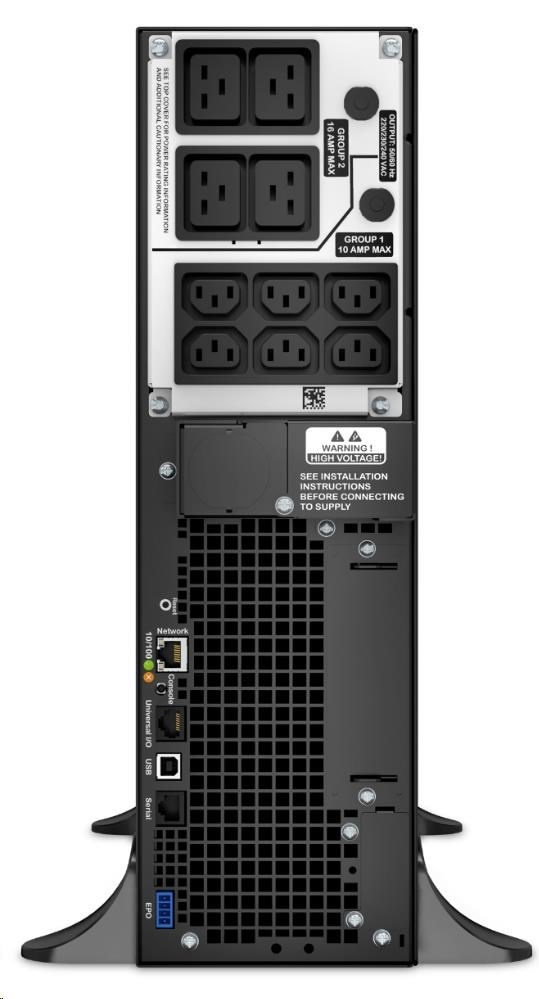 | Dodávka obsahuje | CD se softwarem, Disk CD s dokumentací, Instalační příručka, Záruční karta, EPO Terminal block, Teplotní čidlo, Kabel USB, Kabel RJ45-DB9, Kabel Console-DB9, 2ks kabel 2m C19-C20, Odnimatelná podpora |