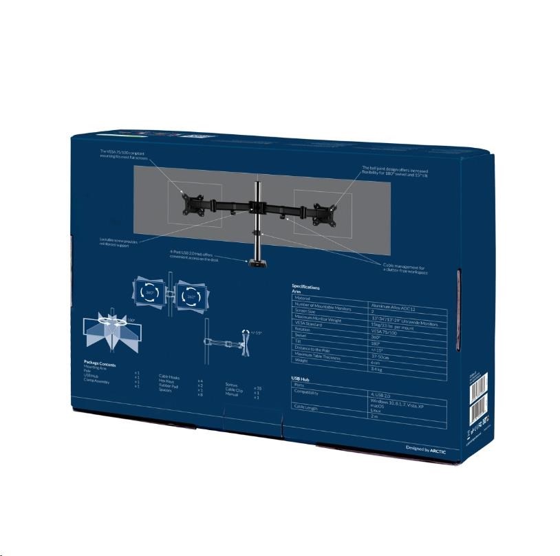 ARCTIC stolní držák Z2 (Gen3) pro 2x LCD do 34", nosnost 2x15kg, 4x USB HUB, černý (black)