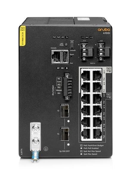 Aruba 4100i 12-port 1GbE (8-port Class 4 POE and 4-port Class 6 POE) 2-port SFP+ DIN Mount Switch