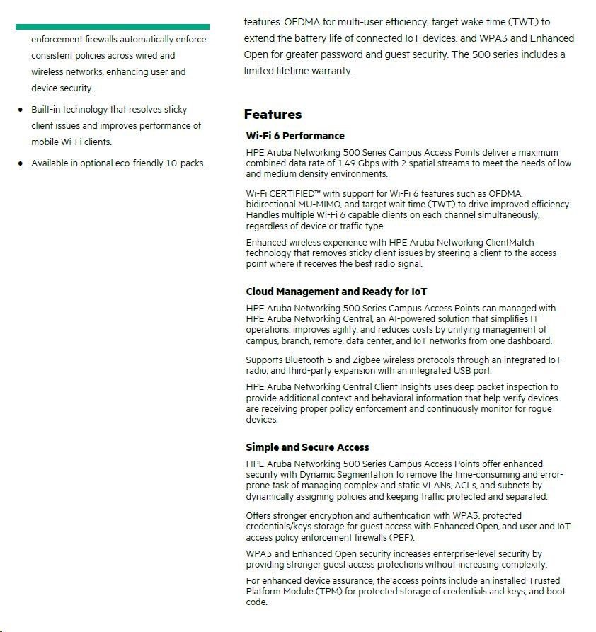 HPE Aruba Networking 500 Series Access Points