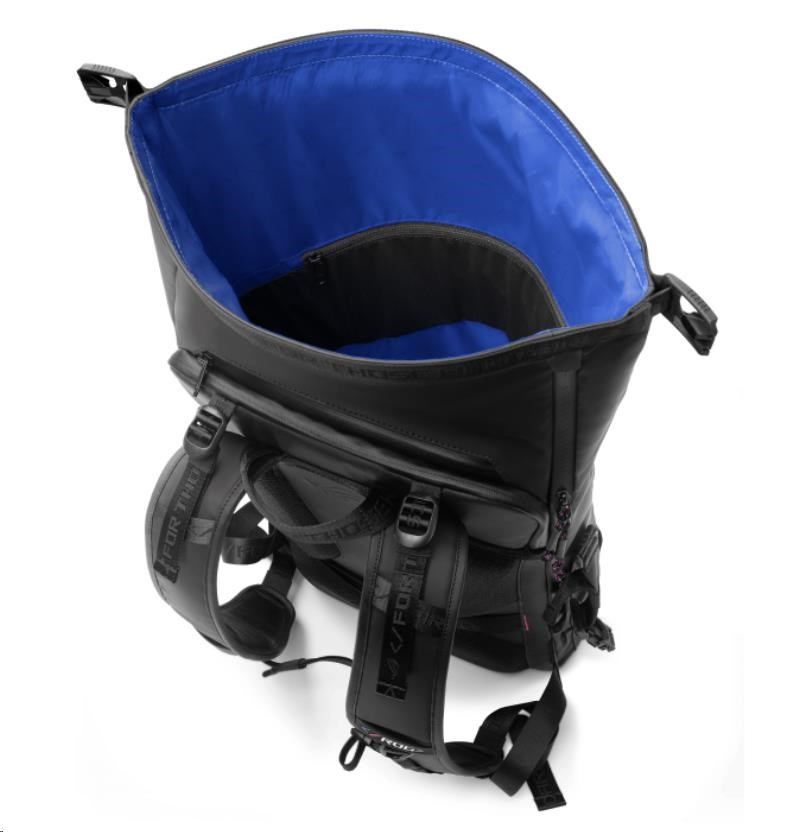 Život vás zavede na nečekaná místa a batoh ROG SLASH 4.0 je připraven cestovat s vámi. Tento stylový batoh s úložným prostorem pro až 18palcový notebook, jeho příslušenství a veškeré doplňky, které si chcete vzít s sebou, byl zrozen, abyste mohli cestovat stylově. Konstrukce s rolovací horní částí vám poskytuje flexibilitu kapacity pro dlouhé i krátké cesty a prvotřídní materiály zajišťují, že batoh ROG SLASH Backpack 4.0 bude vždy vyčnívat z davu.