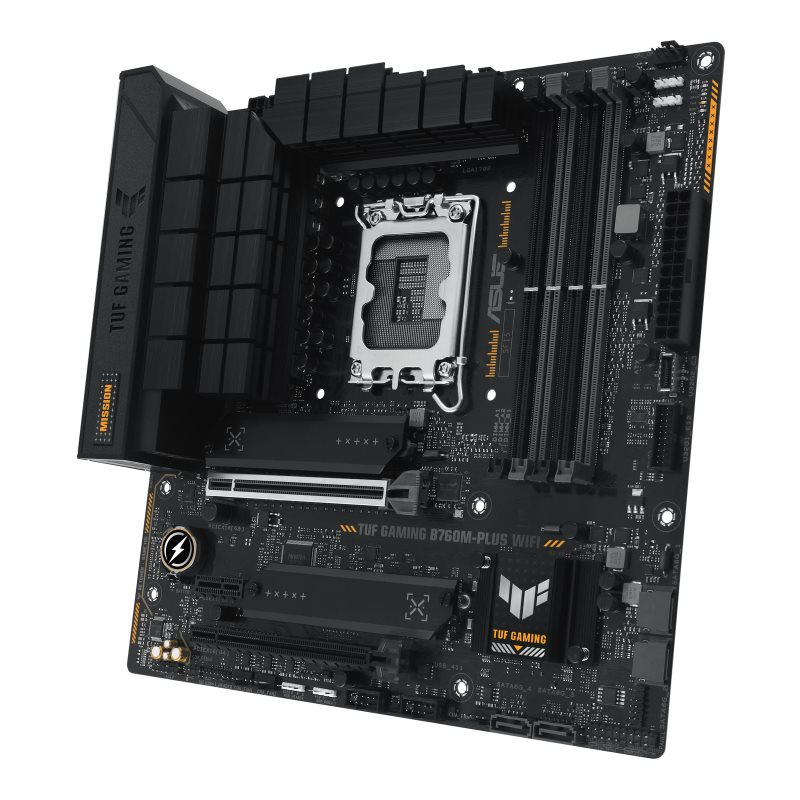 TUF GAMING B760M-PLUS WIFI takes all the essential elements of the latest Intel® processors and combines them with game-ready features and proven durability. Engineered with military-grade components, an upgraded power solution and a comprehensive cooling system, this motherboard goes beyond expectations with rock-solid performance for marathon gaming. TUF GAMING motherboards also undergo rigorous endurance testing to ensure that they can handle conditions where others may fail. Aesthetically, this model incorporates an embossed nameplate and geometric design elements to reflect the dependability and stability that defines the TUF GAMING series.
