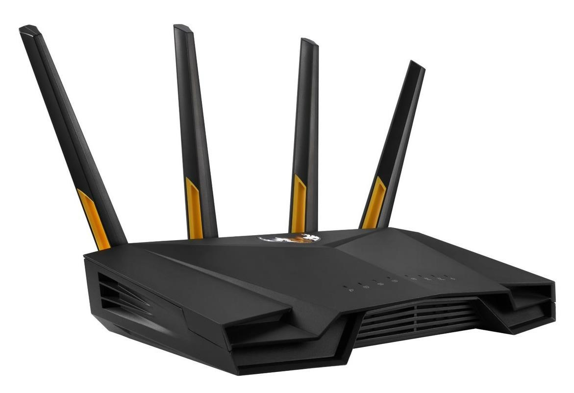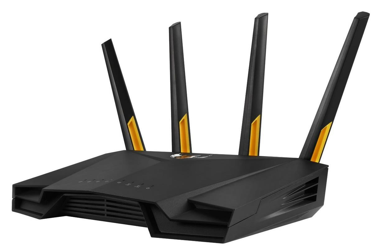 TUF Gaming AX3000 V2 Dual Band WiFi 6 Gaming Router with Mobile Game Mode, 3 steps port forwarding, 2.5Gbps port, AiMesh for mesh WiFi, AiProtection Pro network security Ultrafast WiFi 6 - Enjoy speeds up to 3000 Mbps and 4X network efficiency with OFDMA and 160 MHz channels. True Multi-Gigabit wired speeds - Aggregated 2 Gigabit LAN connections, wired 2.5Gbps port and WiFi 6. Easy Port Forwarding in 3 Steps - Open NAT makes port forwarding simple, eliminating frustrating and complicated manual configuration. ASUS AiMesh Support – Create a flexible, seamless whole-home mesh network with AiMesh-compatible routers. Tested Durability and Stable Operation - TUF Gaming AX3000 V2 is built to be durable and undergoes verified testing to ensure reliable, stable operation. 802.11a : up to 54 Mbps 802.11b : up to 11 Mbps 802.11g : up to 54 Mbps WiFi 5 (802.11ac) (1024QAM) : up to 867 Mbps WiFi 6 (802.11ax) (2.4GHz) : up to 574 Mbps WiFi 6 (802.11ax) (5GHz) : up to 2402 Mbps 2.4GHz 2x2 5GHz 2x2 RJ45 for 2.5 Gigabits BaseT for WAN x 1, RJ45 for Gigabits BaseT for LAN x 4, USB 3.2 Gen 1 x 1,.
