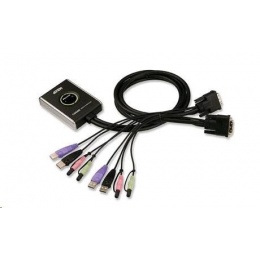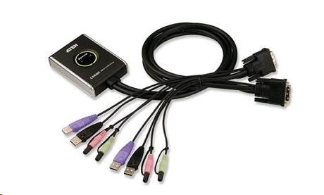 ATEN přepínač KVM 2-port DVI KVMP USB2.0, mini, audio, 1.2m kabely