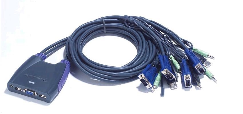 ATEN přepínač KVM 4-port VGA KVMP USB2.0, mini, audio, 1,8m kabely