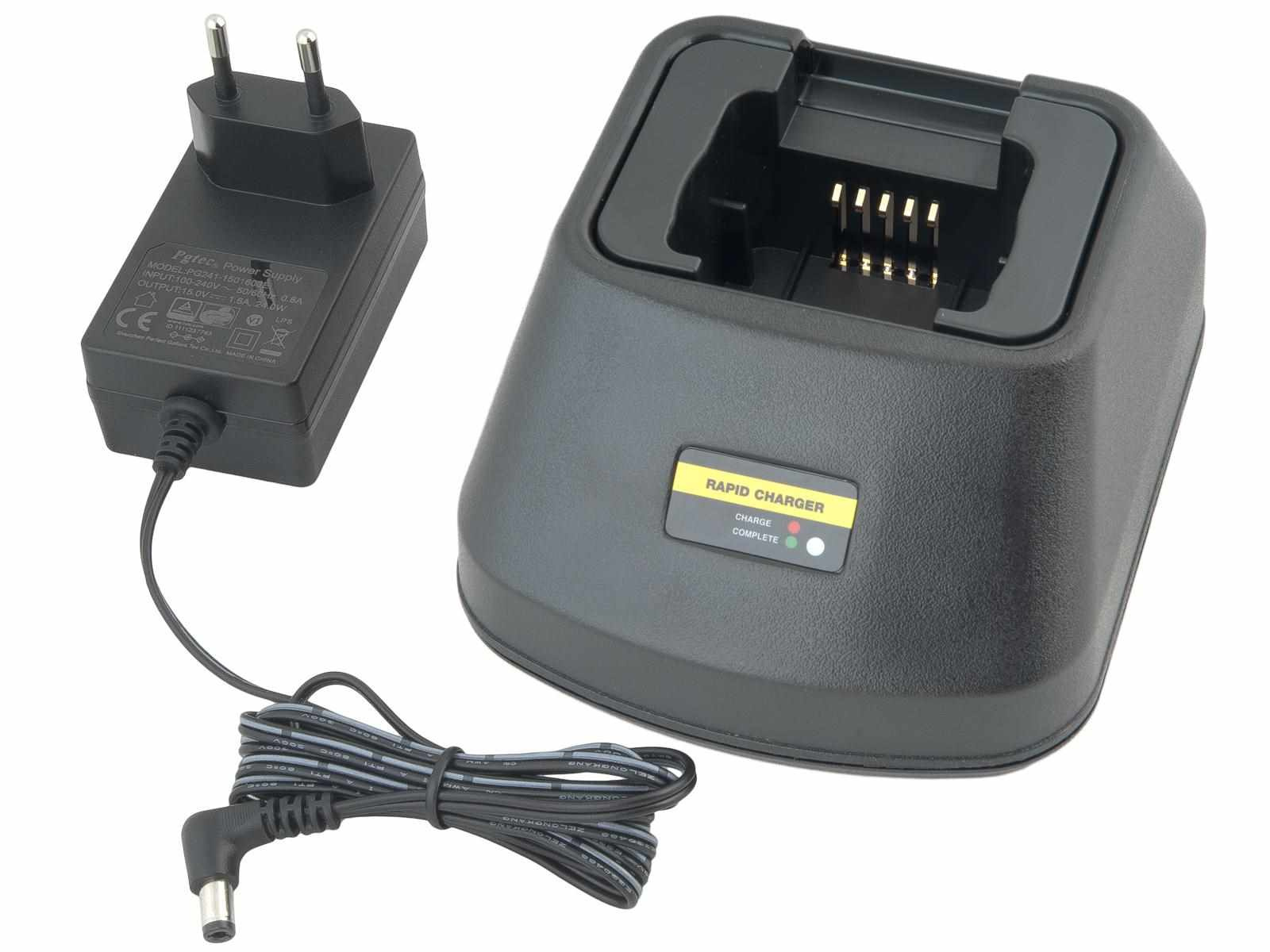Kompletní nabíječ s redukcí pro nabíjení baterií PMNN4434, PMNN4434AR, PNN4434A, PNN4453, PNN4453A pro radiostanice Motorola RMM2050, RMU2040, RMU2080, RMU2080D, RMU Series, RMV2080, RMV Series, XT420, XT460.