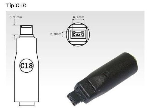 - Výstup: C18 (6,54mm x 3,2mm) vhodné pro notebooky Dell