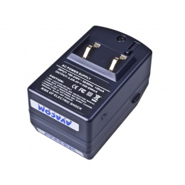 Kompaktní síťová nabíječka pro baterie digitálních fotoaparátů a videokamer.