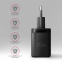 Pokročilý systém ochran na výstupu nabíjecího adaptéru chrání nabíjené zařízení před poškozením. Funkce nabíječky také zajistí rozpoznání nabíjeného zařízení a zvolení optimální rychlosti a průběhu nabíjení.