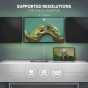 Každý ze tří video výstupů (2x HDMI + 1x DisplayPort) poskytuje kvalitní obraz až do rozlišení 4K/60Hz Ultra HD. Podporovány jsou také vysoké frekvence v oblíbených hráčských rozlišeních 2K/144Hz nebo FullHD/240Hz. I při připojení tří monitorů současně zvládne dokovací stanice zajistit rozlišení až 4K/30Hz na každém z nich. Díky podpoře HDR (vysoce dynamický rozsah) si můžete bez omezení vychutnat výrazně rozšířený rozsah barev a kontrastů. Pro správné fungování video výstupu je nutné, aby USB-C port notebooku podporoval DisplayPort Alternate Mode (DP Alt Mode) nebo Thunderbolt 3/4. Podpora výše uvedených max. podporovaných rozlišení a frekvencí vyžaduje připojení k počítači s DisplayPort verze 1.4.