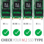 Adaptér podporuje použití SATA i NVMe (PCI-Express) M.2 SSD disků, jednostranných i oboustranných. Redukce nemá omezení kapacity SSD disků a lze použít M.2 karty všech rozměrů až do délky 110 mm. Samozřejmostí je fungování obou disků zároveň.