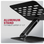 Podstavec je vyroben z robustních hliníkových odlitků garantujících dlouhou životnost a spolehlivost. Díky protiskluzové úpravě se nemusíte obávat nežádoucích pohybů – vaše zařízení zůstane pevně na svém místě, a to bez poškození povrchu notebooku či podložky. Tyto pečlivě navržené vlastnosti zaručují perfektní stabilitu pro váš notebook, tablet nebo dokonce oblíbenou knihu, což vám poskytne klid a pohodlí při každodenním používání.