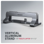 Kompaktní rozměry stojanu umožňují pohodlné přenášení kamkoli potřebujete. Jeho elegantní design v šedé barvě nejen stylově doplní váš pracovní stůl, ale také přináší praktické funkce, které oceníte při každodenním používání.