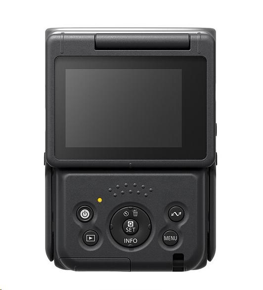 Kameru PowerShot V10 ve vertikálním těle a navrženou s důrazem na jednoduchost, lze téměř kompletně ovládat jednou rukou. Je vybavená 2,0palcovým dotykovým LCD displejem, který lze překlopit dopředu, což je ideální pro natáčení sám sebe při vlogování i při natáčení ostatních z ruky, když chcete snadno zachytit emoce a navodit intimnější atmosféru mezi vámi a diváky. Integrovaný stativ vám umožní nahrávat víc obsahu z pevného pohledu, jako jsou návody na vaření, hauly a další oblíbené formáty jako „Get Ready With Me“, „Unboxing“, „AMA“ nebo videa se seznamy.