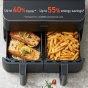 Kapacita každého jednotlivého koše horkovzdušné fritézy Cosori Dual Basket je 4,25 l, její celková kombinovaná kapacita je tedy až 8,5 l. Díky tomuto obrovskému objemu můžete bez obav připravit 2 různé chody pro celou rodinu, nebo dvojnásobné množství jednoho chodu pro vaši rodinu a přátele.