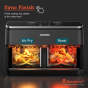 Pokud hledáte způsob, jak připravovat různá jídla současně, aniž byste museli používat více zařízení nebo dělat kompromisy v chuti, pak je pro vás horkovzdušná fritéza Cosori Dual Basket tou správnou volbou. Má dva nezávislé koše, které umožňují připravit dva různé pokrmy najednou, s různým nastavením teploty a času. Cosori Dual Basket využívá technologii 360 ThermoIQ™, která zajišťuje, že vaše jídla budou rovnoměrně uvařená, šťavnatá uvnitř a křupavá zvenčí s použitím malého množství anebo vôbec žádného oleje. Horkovzdušná fritéza Cosori Dual Basket se velmi snadno ovládá a využívá dotykový ovládací panel s intuitivním rozhraním. Díky průhledným okénkům z kvalitního borosilikátového skla na přední stěně fritovacích košů a vestavěnému světlu můžete sledovat své jídlo během přípravy, aniž byste museli fritézu otevírat.