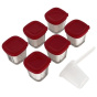 Součástí balení je 6 nádob po 140 ml s víčkem a sítkem a také podnos s uchy, který lze použít k uložení 6 sklenic pro snadnou přepravu v chladničce. Lze mýt v myčce nádobí a 100% neobsahuje BPA
