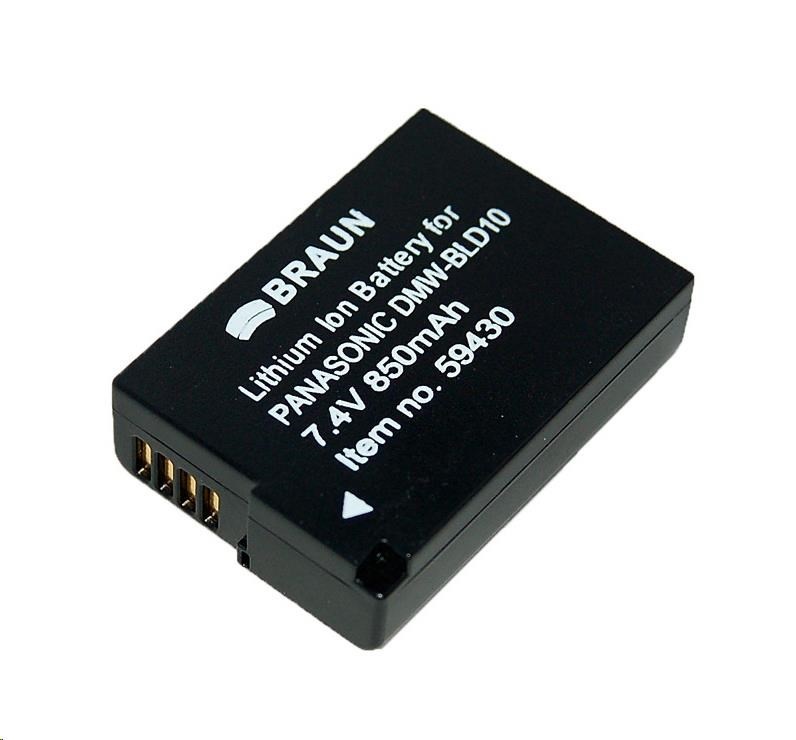 Li-lon akumulátor Braun BDP-PLD10 (D134, Panasonic BLD10 - 7,4 V/850 mAh) pro digitální fotoaparáty PANASONIC Lumix G3, GF2, GX1. Tento akumulátor je dodáván v částečně nabitém stavu. Před použitím je vhodné akumulátor nabít. Plné kapacity akumulátoru může být dosaženo až po cca 4-5 nabíjecích cyklech..