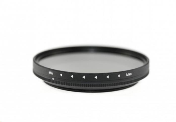 Neutrální šedý filtr ND Braun s plynule nastavitelnou hodnotou zčernání v rozmezí faktoru 4-400x (2-8 clon). Filtr se dodává včetně pouzdra a krytky (vnější průměr filtru je větší než vnitřní) eventuelně redukčních kroužků. Velké rozmezí zčernání hlavně pro videozáznamy - kromě prodloužení expozičního času slouží hlavně k snížení hloubky ostrosti..