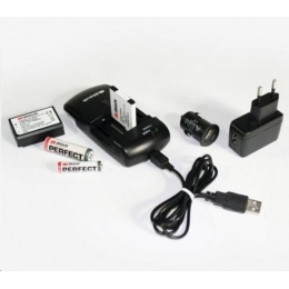 Univerzální nabíječka Li-lon akumulátorů a NiMH AA/AAA článků s posuvnými kontakty (snadné ovládání) ve skutečně minimálních rozměrech. Funkce Battery Activator pro zcela vybité akumulátory, nabíjecí proud 1000 mA. Včetně USB kabelu, USB síťového zdroje a USB adapteru do auta, které lze samostatně použít i pro nabíjení mobilních telefonů / MP3 / iPhone a dalších přístrojů..