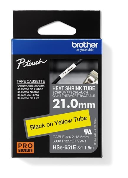 BROTHER smršťovací bužírka - HSE-651E žlutá pro H300 H500 E550 P700 P750 D800 P900 P950 - 21mm / 4,2-13,5mm / 3:1