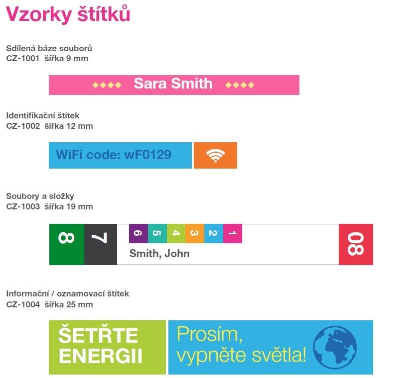 Vložte roli (k dispozici v 5 různých šířkách) a tikněte fotografie, nálepky a štítky s odolným přilnavým podkladem.