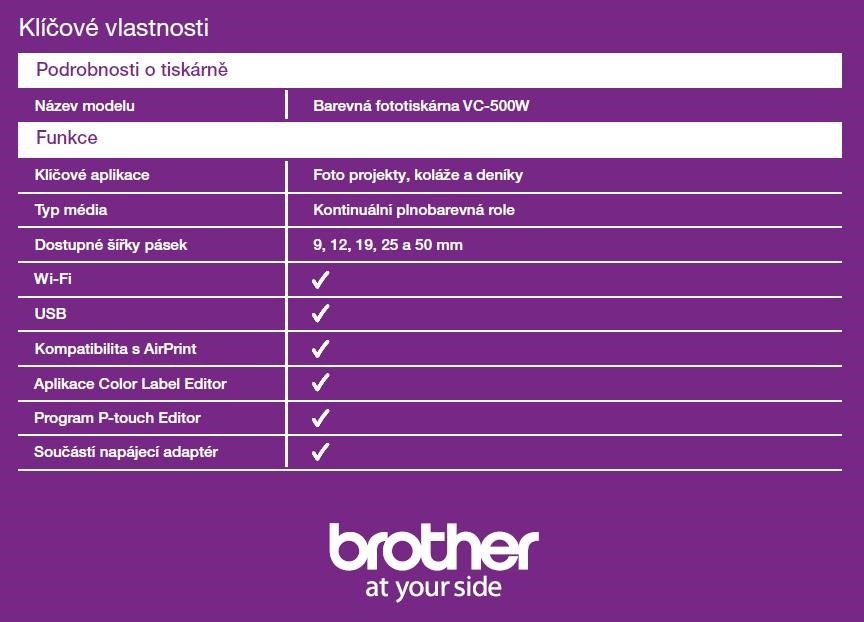 BROTHER tiskárna štítků FOTO - VC500W - WIFI, USB, COLOR bez potřeby inkoustu - Integrovaný odstřih