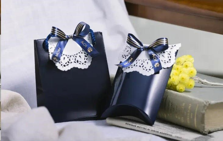 BROTHER TZE-RN34 - kazeta TZ šířky 12mm, TEXTILNÍ páska 4m- pro tvorbu dárků - NELEPÍCÍ - MODRÁ PÁSKA, ZLATÝ POTISK gold