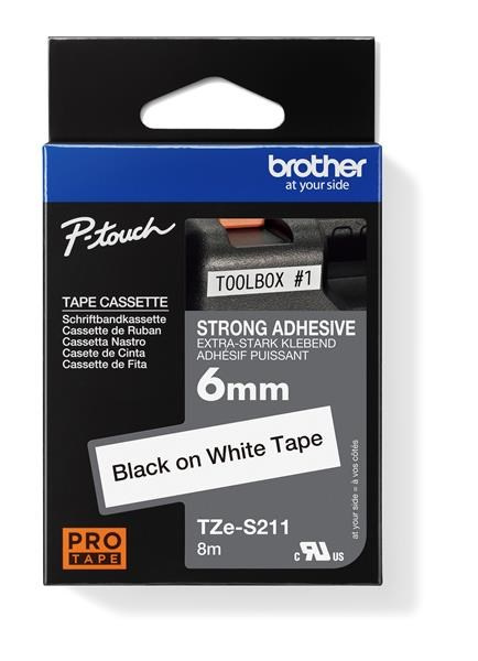 BROTHER TZES211 - kazeta TZ šířky 6mm, extrémně adhesivní lamino TZE-S211, bílá/černé písmo