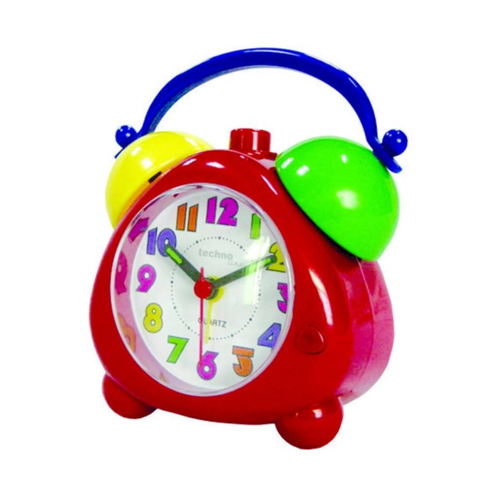 TechnoLine Modell K red dětský budík, analogový, řízený krystalem, tichý chod, pestrobarevný