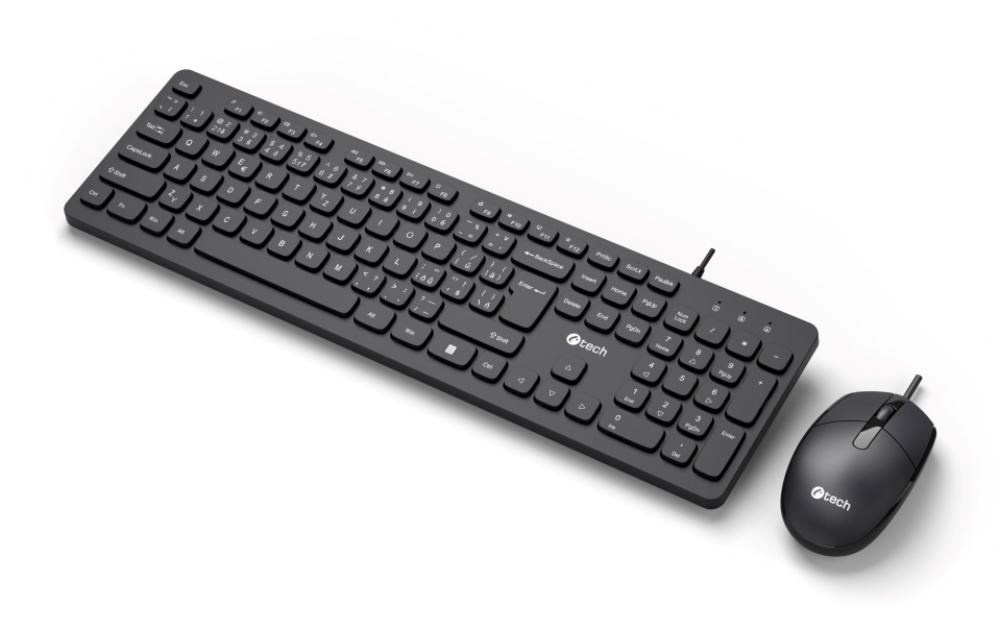 C-TECH Klávesnice KBM-105, drátový combo set s myší, USB, CZ/SK