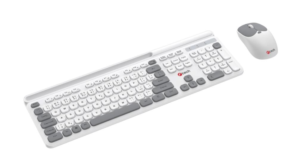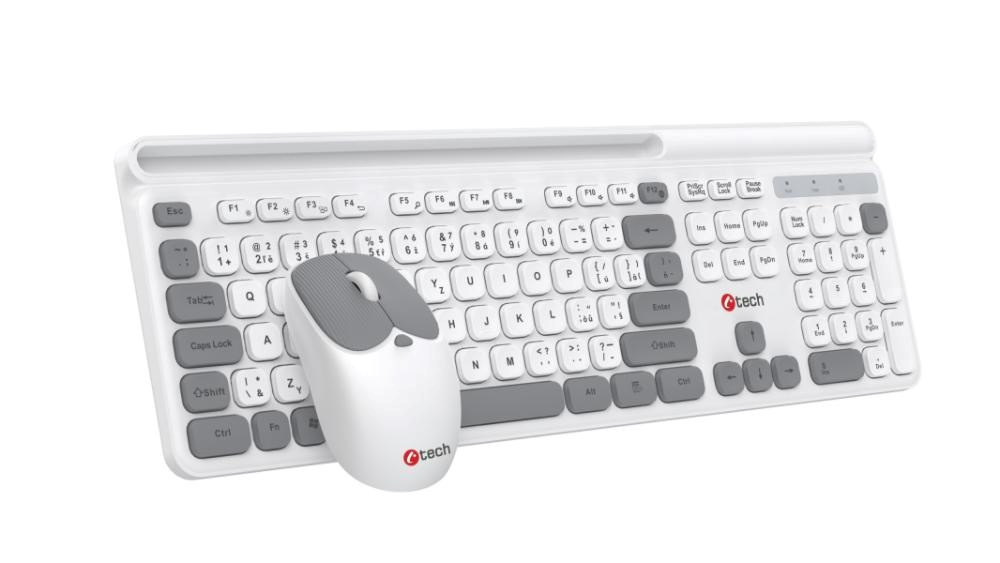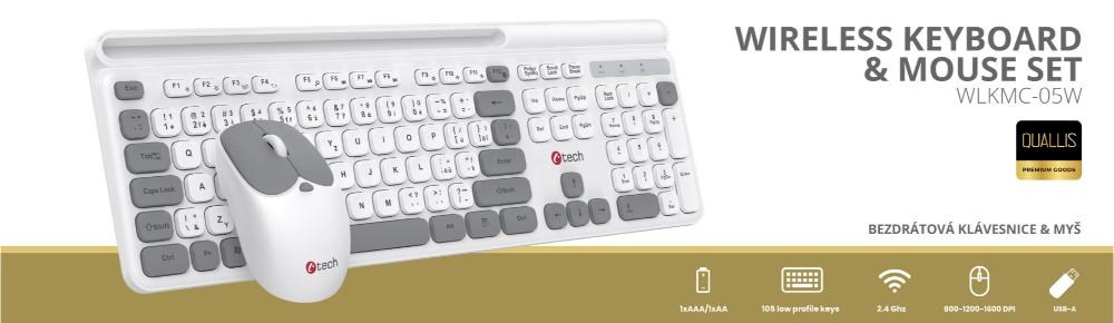 C-TECH klávesnice s myší WLKMC-05W, Bezdrátový set 2.4GHz, CZ, Bílá