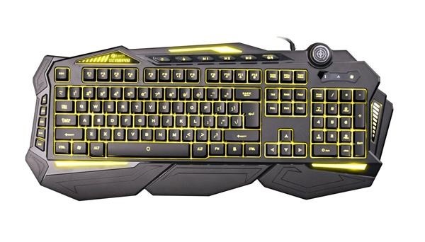 Typ klávesnice:Membránová; Rozhraní klávesnice:Drátová USB; Lokalizace klávesnice:CZ/SK; Výbava klávesnice:Podsvícené klávesy, Makro klávesy, Multimediální klávesy.